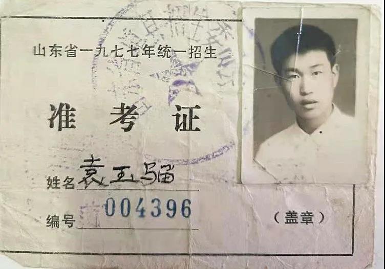 袁玉骝同学的“山东省一九七七年统一考试准考证”。