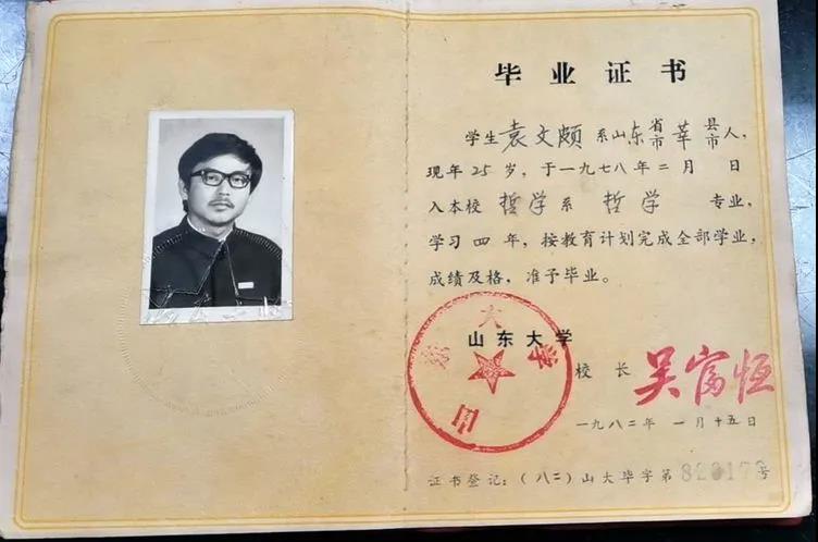 1981年12月29日,哲学系77级全体同学与系领导及部分老师在新校数学楼前合影。1982年1月9日,在老校体育场举行毕业典礼,颁发毕业证书,全校77级全体毕业生与校领导、各系教师代表拍合影照。晚上以系为单位在学生食堂聚餐(依稀记得惜别饭使用大白碗喝啤酒)。1月10日,公布毕业分配方案与名单;1月11日,办理离校手续,发工作派遣证;12日,结束大学本科生活,同学们握手告别亲爱的老师和同学,离开美丽的山大小树林,奔赴祖国各地。