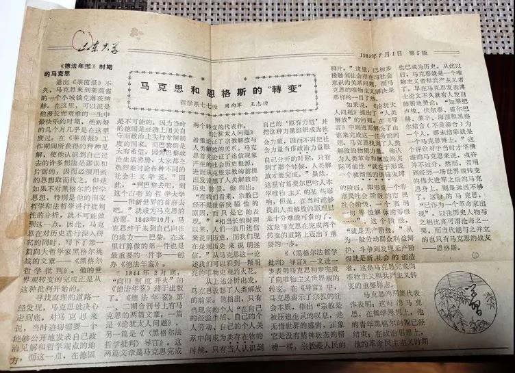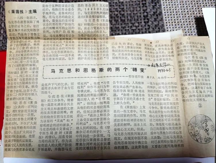 校报上的文章《马克思和恩格斯的两个“转变”》。