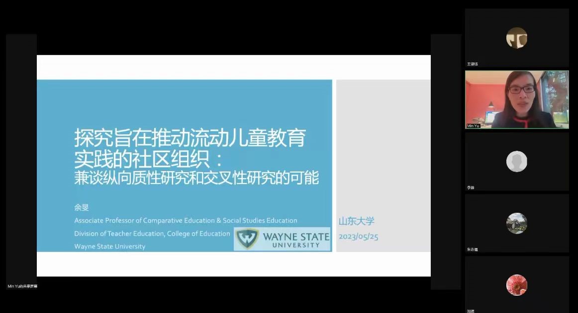 5月25日,美国密歇根州韦恩州立大学教育学院余旻副教授应我院李淼教授邀请,以“探究旨在推动流动儿童教育实践的社区组织——兼谈纵向质性研究和交叉性研究的可能”为题,结合自身多年的研究经验,为哲社学子呈现了一场精彩的线上讲座。讲座由我院社会学系李淼教授主持,北京师范大学向芯老师作为与谈人参与了讨论