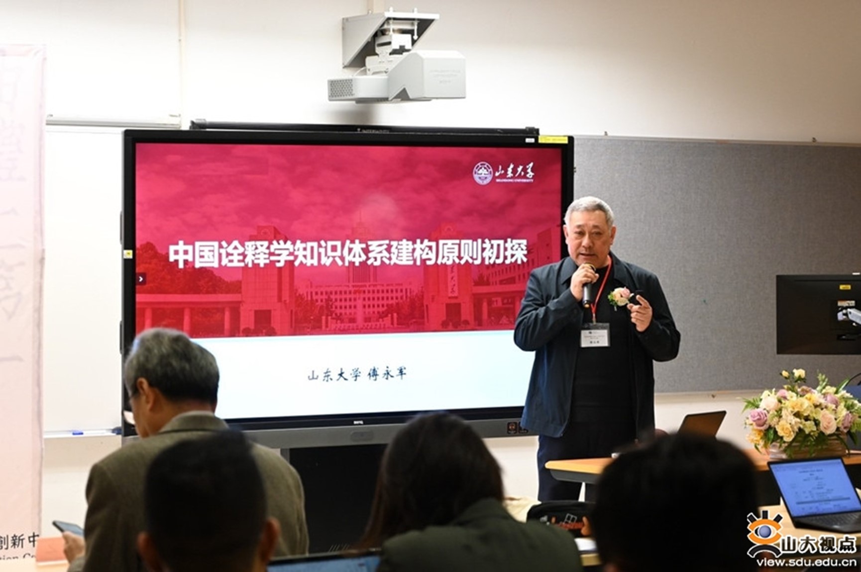 傅永军教授以“中国诠释学之时体系建构原则初探”为题发表基调演讲,系统性地梳理了汉语学界的中国诠释学创新实践以及学术进路。他认为,中国诠释学的创新性理论建构工作需满足三个要求:第一,必须建基在中国古老的经典诠释资源的现代性转化之上;第二,必须满足诠释学的现代性要求;第三,必须体现出诠释学的学科特徵。此种分析表明,“哲学诠释学”在中国经典诠释学的理解理论建构中,其作为参照镜像的重要地位,以及作为满足中国诠释学建构之新理论的要求,更进一步厘清“经典诠释”与“经典诠释学”、“注释学”与“诠释学”等对应概念,在此基础上搭建自身的知识体系。