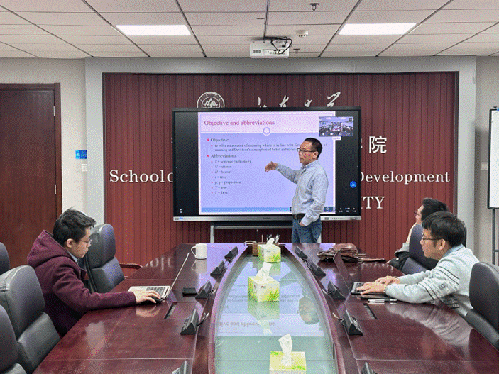 冯老师指出格莱斯将意义分为所言(the said)和所寓(the implicated),但传统理论无法解释为何两者均难以被取消。他认为,意义的核心在于说话人的信念,而非单纯的语言形式或命题内容。通过分析信念的层次——基础信念(ground-floor belief)、高阶信念(higher-order belief)和额外信念(extra belief),基于此他重构了格莱斯框架。与此同时,冯老师强调,意义的确定性源于说话人的意图。他批评认知语义学过度关注听者推理,主张回归说话人视角,将意义定义为“说话人意图表达的心理内容”。