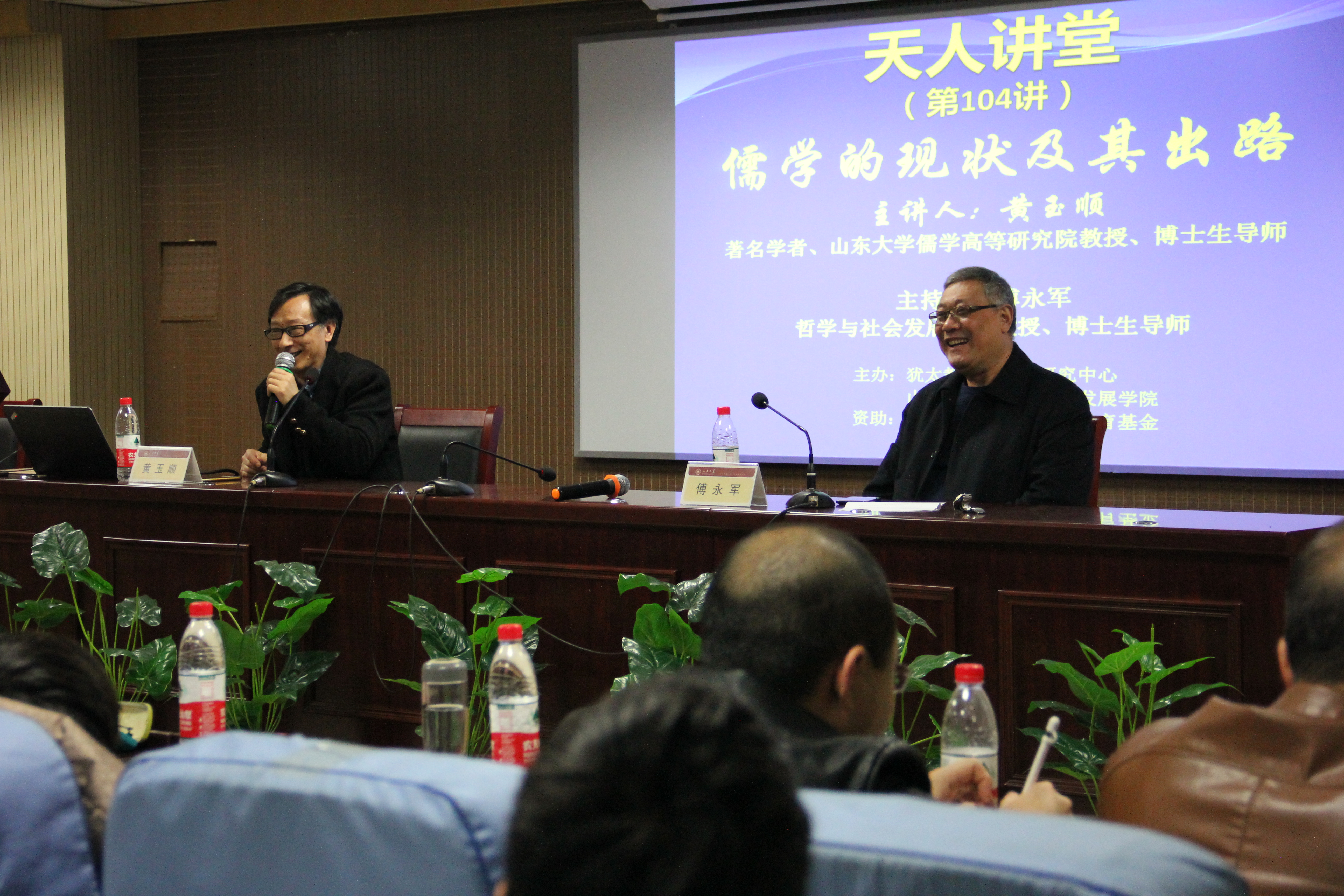 儒学高等研究院黄玉顺教授做客“天人讲堂”第104讲,演讲题目为“儒家的现状及其出路”。