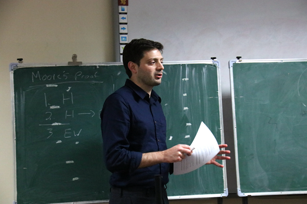 讲座伊始,Dr.Ranalli首先介绍了摩尔为了证明外部世界的存在做的一个证明。他先举起来一只手,说:“我知道这是一只手。”然后他举起另一只手说:“我知道这是一只手”。摩尔做出这个证明是为了说明不需要复杂的哲学论证,我们只需要常识就能对一些哲学理论例如自由意志怀疑论进行反驳。从摩尔对外部世界存在的论证出发,Dr. Ranalli总结出摩尔式论证的大致框架,包括两个前提一个结论。前提一由日常命题组成。前提二与前提一相关,是从前提一出发而推出的,一般是对怀疑论的否认。结论则是从前提一二推出的哲学命题。根据摩尔式的论证,我们发现从日常例子出发,结论总是很容易就被得出,而不需要复杂的哲学论证。一些哲学家因此认为摩尔论证的问题在于前提的证据不能是对结论的证据。证据不能从前提传递到结论上。另一些哲学家认为摩尔论证的问题在于辩证的无效性。如果摩尔的认识论是正确的,那么摩尔的论证应该怎么解释这一论证缺陷?讲座中Dr.Ranalli循序渐进,概括了摩尔的认识论论证,指出了这一论证的不足,并详细介绍了两个对摩尔论证做出回应的理论。提问环节中,污污漫画