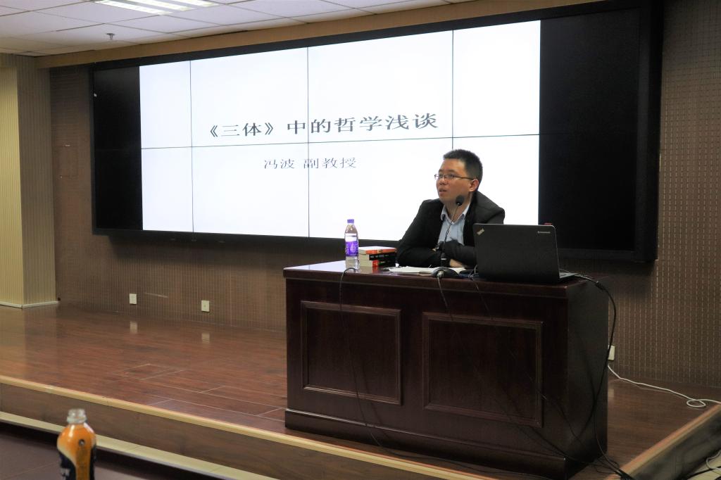副教授、硕士生导师冯波以“《三体》中的哲学浅谈”为题做专题讲座。