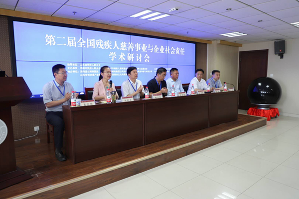 副院长、教授、博士生导师陈坚在欢迎辞中高度评价研讨会,并表示将继续加强并积极推动国内外残障研究学术交流;济南市残疾人联合会党组书记、理事长孙君涛在致词中认为研讨会是残疾人工作发展中的一次盛会,更是对残疾人事业的一次有力推动;爱眼公益基金会秘书长傅阳在致辞中表示爱眼公益基金会将一如既往支持济南市残疾人事业;山东省残联副理事长、党组成员黄庆峰在致辞中高度肯定研讨会在残疾人慈善事业方面发挥的积极作用,强调企业社会责任是残疾人慈善事业发展中的重要推动力量。