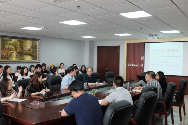 在下午的“关于世界一流大学的研究生”座谈会上,边燕杰老师分享了个人的学研历程,并以美国为例介绍了世界一流大学以及学术分类的国际标准,边燕杰老师还总结出拔尖创新人才的五大特征。最后,边老师对学生们做出殷切的嘱望,激励大家成为一流大学的研究生。