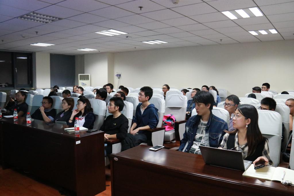 最后的提问环节,邹教授同在座师生就“利用CCG范畴语法来向经验主义靠拢是否太理想化”、“自然语言具有语义在先,语型在后的特点,CCG路径下怎样更契合语义”等问题进行交流切磋。