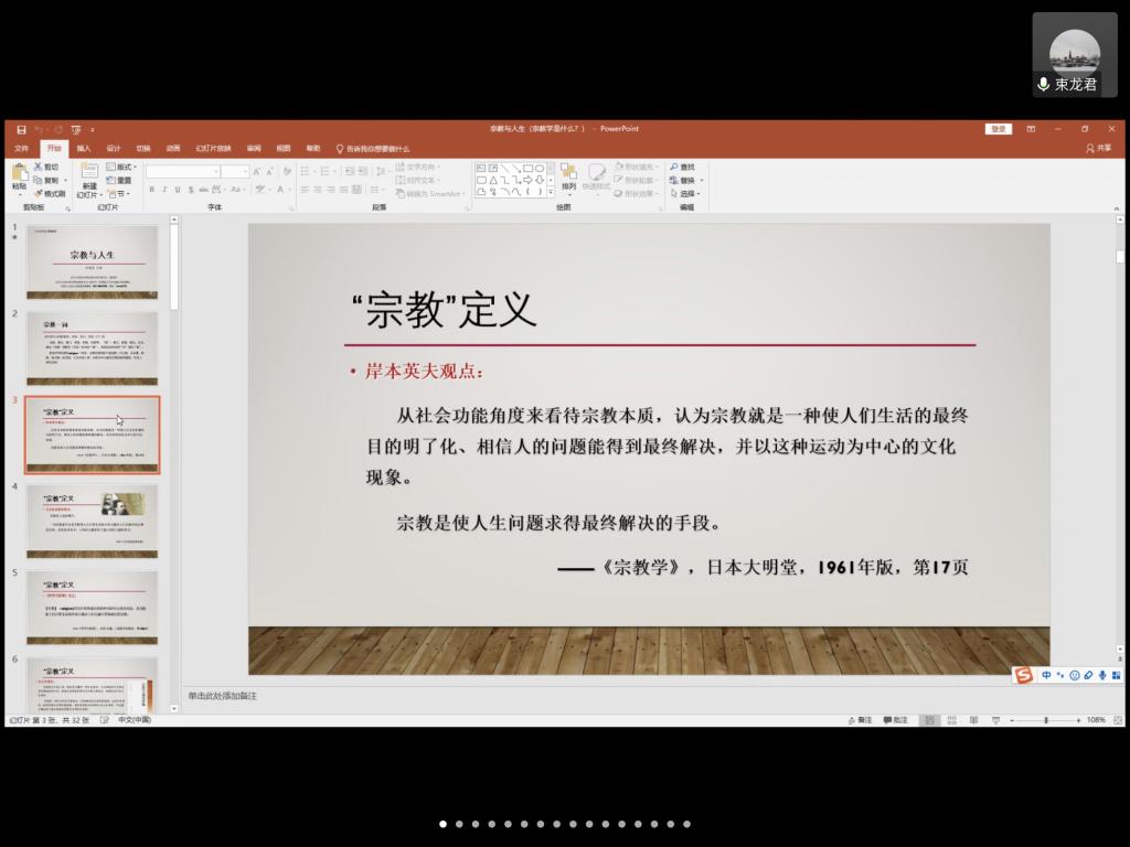 为同道学堂的同学们提升人文素养打造的品牌活动,旨在鼓励大家乐于学习知识,乐于探索知识。本期讲座向同学们介绍了“宗教和人生”这一主题,为大家展示了宗教学的学科思想和宗教学研究的魅力,帮助大家开拓视野,增强人文精神。