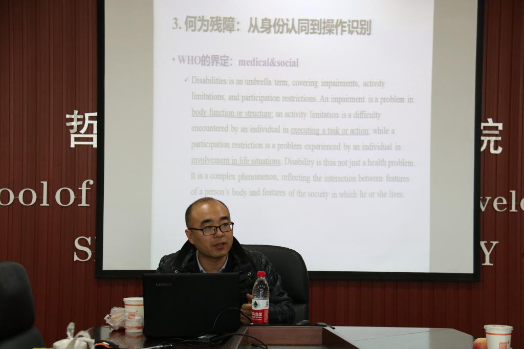 张月云老师的报告分为四个主题,其一是从国际背景和中国本土化的视角看融合教育问题;二是随班就读现象与残障学生发展的系统评估;三是残障从身份认同到操作化识别的概念变迁;四是残障调查研究中抽样调查何以可能的问题。首先,张月云老师简单叙述了融合教育的概念、融合教育的全球化发展以及融合教育目前面对的质疑,着重讨论了融合教育的本土化——随班就读这一现象。随后,他展示了残障学生与普通学生的两组比较数据,并指出,目前针对残障学生的调查数据收集工作仍然任重而道远。在对残障对的定义和界定部分,张老师展示了世界卫生组织对残障的界定,并提出对残障的识别工作是十分重要而有意义的。最后,张老师探讨了对残障儿童的融合教育的抽样调查何以可能的问题,指出概率性抽样调查这种研究方法的重要性,并提出两种可能的研究路径:一是基于全国范围的概况性调查,二是局限于特定地区的精细化调查。期间,他还畅想了该领域未来可能的研究方向。