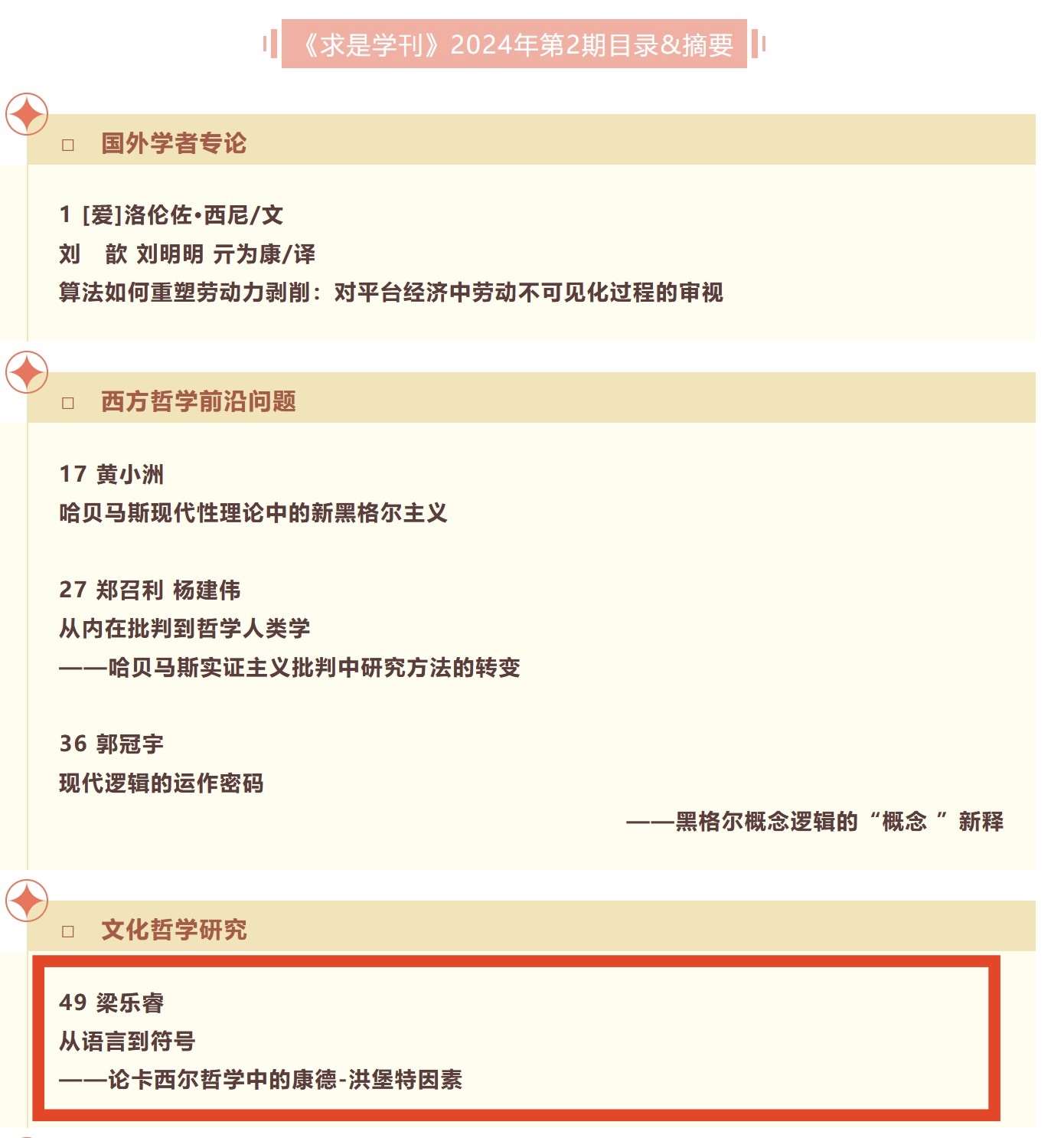 梁乐睿副教授在《求是学刊》2024年第2期上发表了题为《从语言到符号——论卡西尔哲学中的康德-洪堡特因素》的论文。