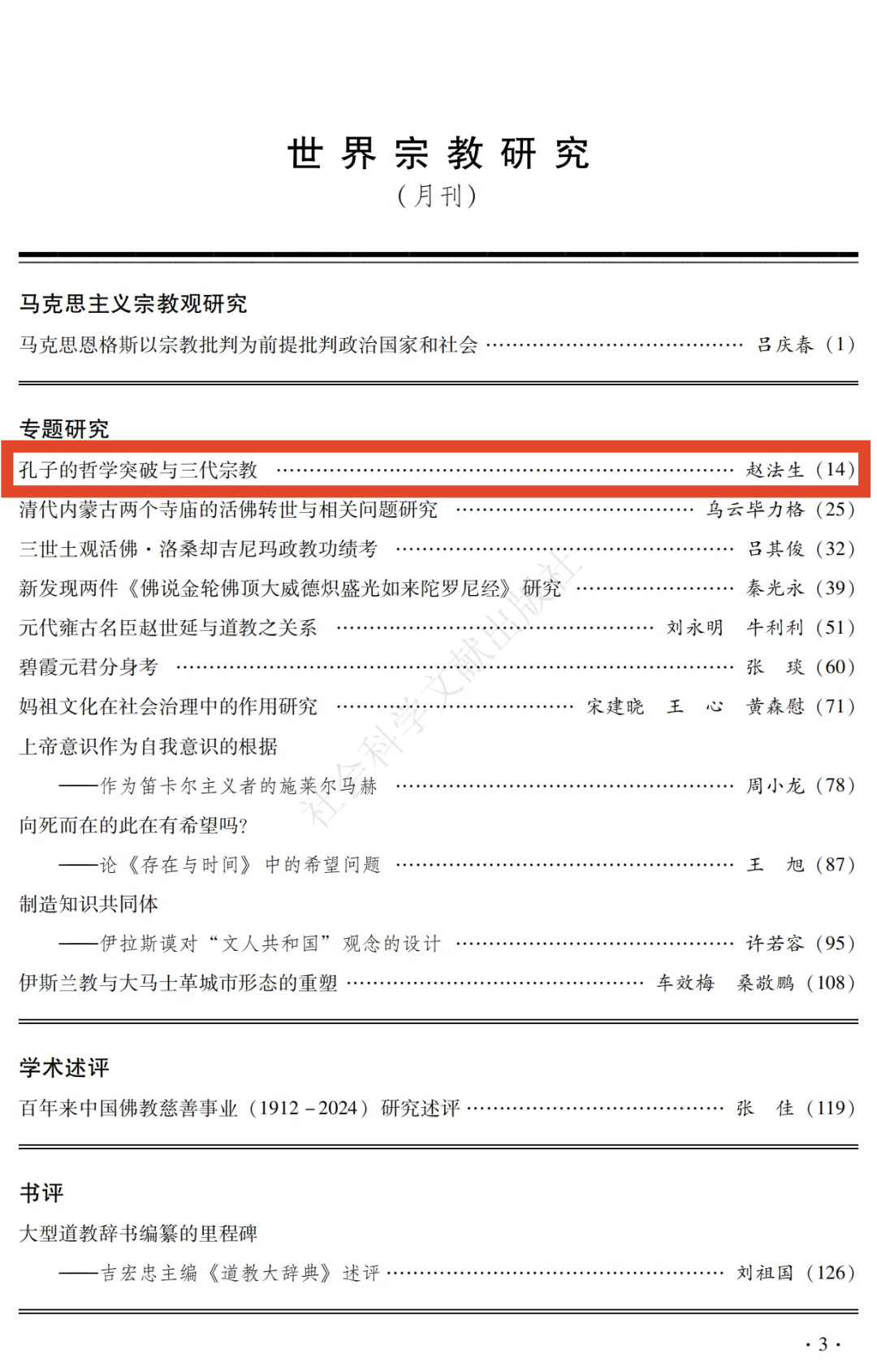赵法生教授在《世界宗教研究》2024年第4期上发表了题为《孔子的哲学突破与三代宗教》的高质量论文。