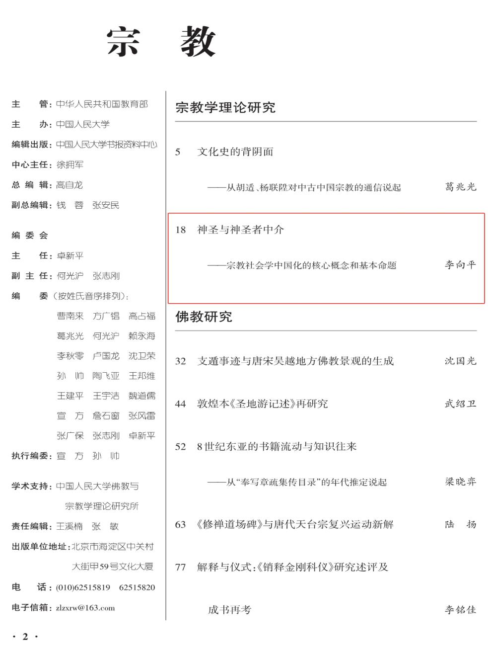 哲学与社会发展院李向平教授的题为《神圣与神圣者中介-宗教社会学中国化的核心概念和基本命题》的高质量论文。本文系国家社会科学基金重大项目“中国特色宗教社会学话语体系及其本土知识结构研究”(18ZDA230)的阶段性成果。