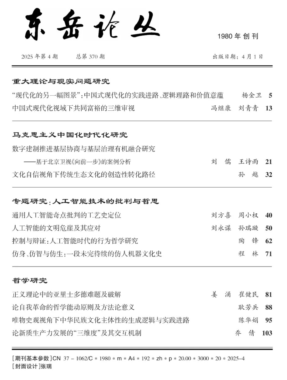 姜涌教授与其博士研究生崔健民共同在《东岳论丛》2025年第4期上发表了题为《正义理论中的亚里士多德难题及破解》的高质量论文。