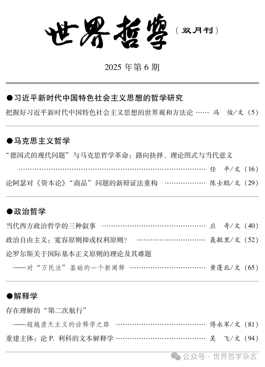 傅永军教授在《世界哲学》2025年第6期发表了题为《存在理解的“第二次航行”——超越虚无主义的诠释学之路》的高质量论文。