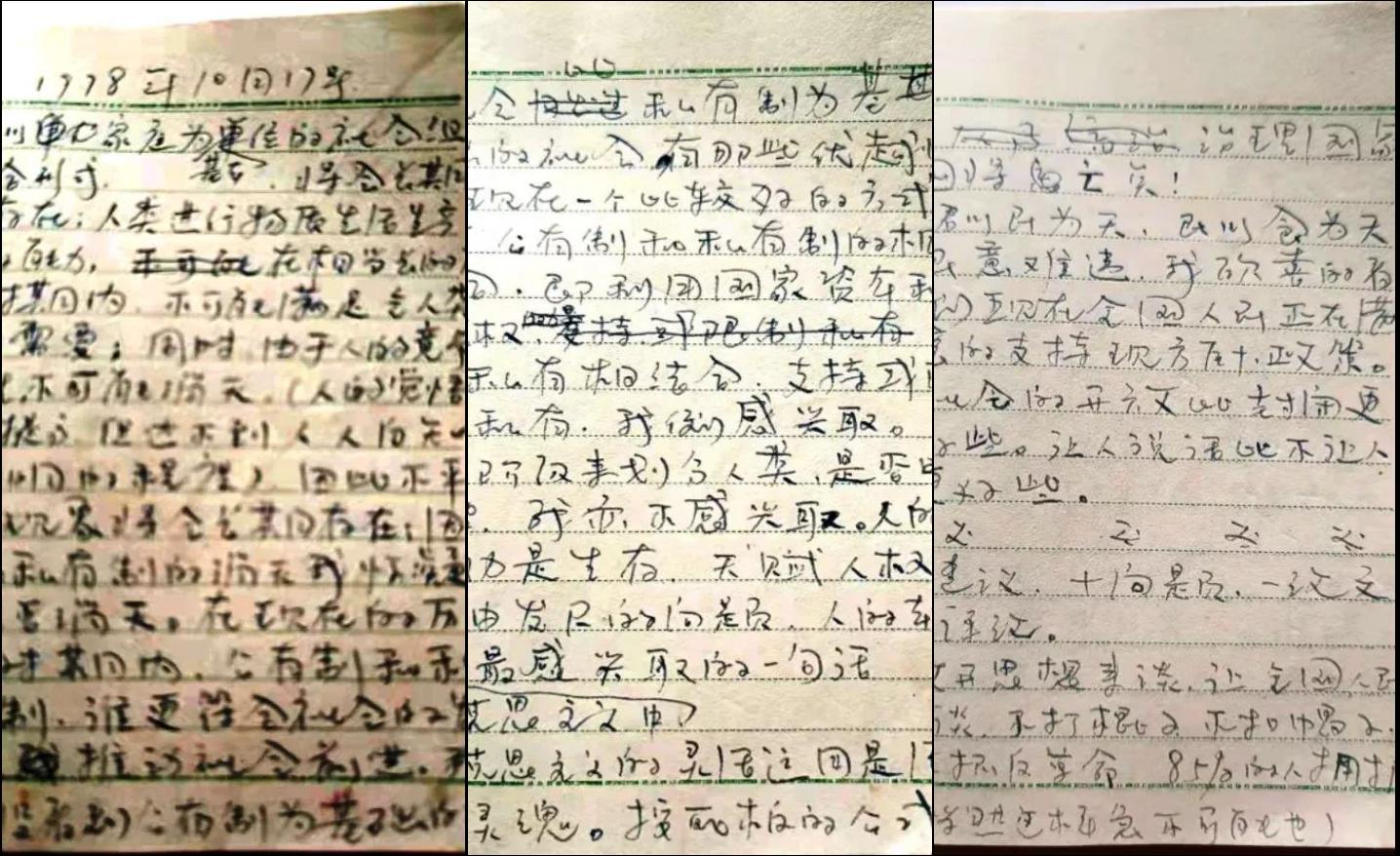 袁玉骝同学入学半年,通过哲学学习,思想发生了深刻的变化,在对当时国家发展的思考后于1987年10月17日写的日记和研究地球的问题的感言,阐述了许多思想解放的观点。