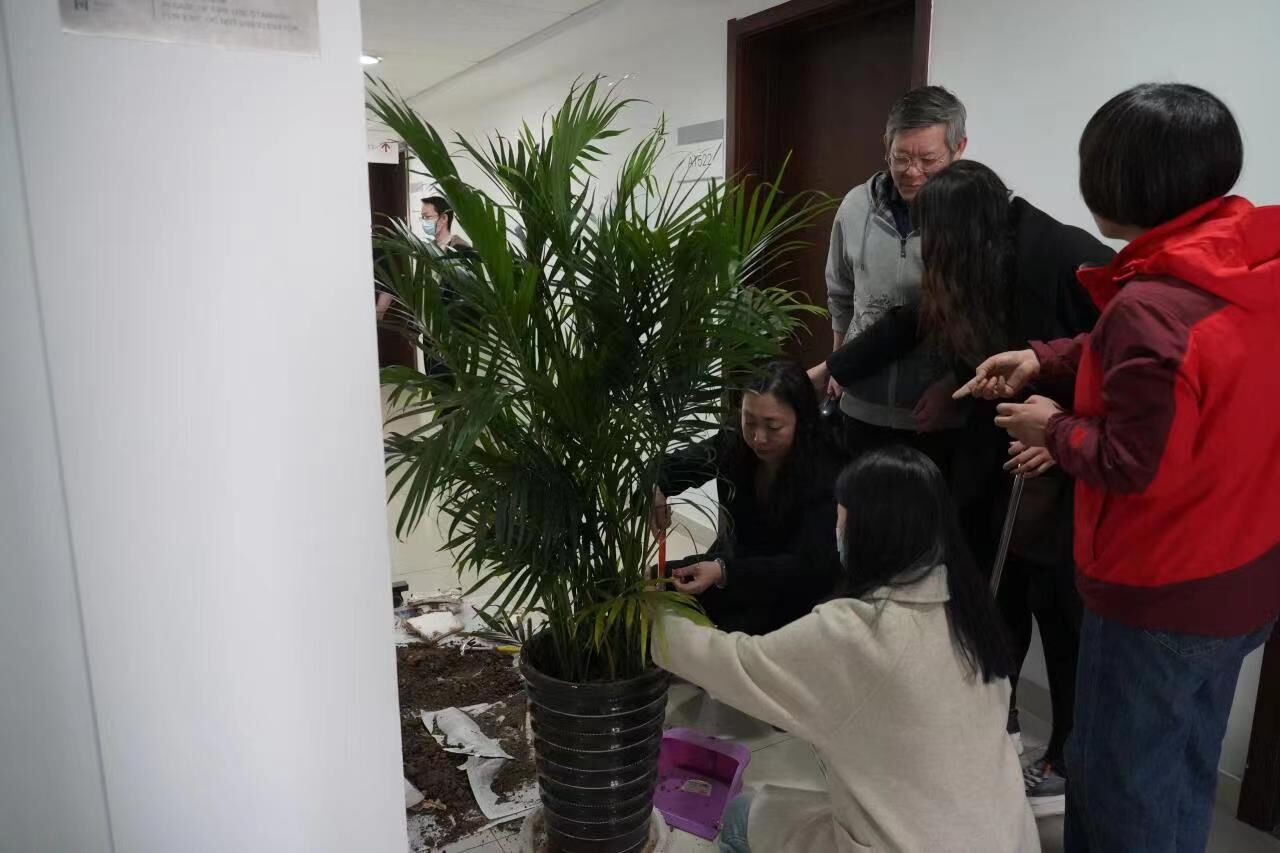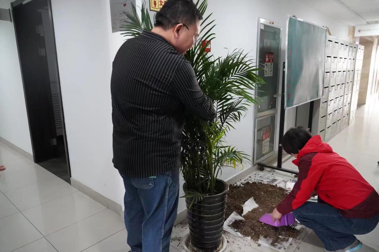 教工机关支部开展办公室增植添绿活动。