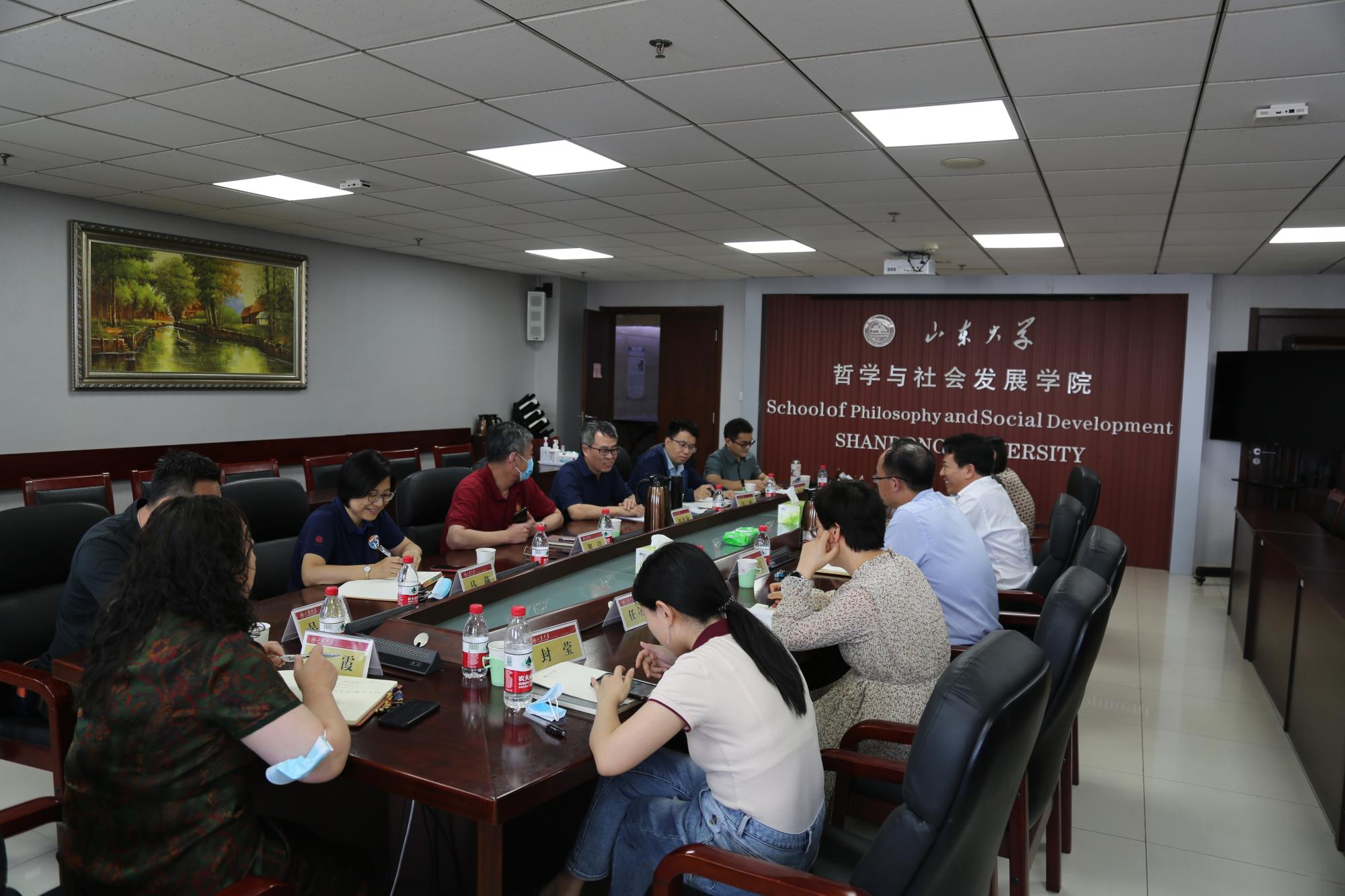 院长刘森林、党委书记郑倩、副院长李忠路、副院长冯波、党委副书记马燕、哲学系主任吴童立、污污漫画教务员及辅导员参加座谈。