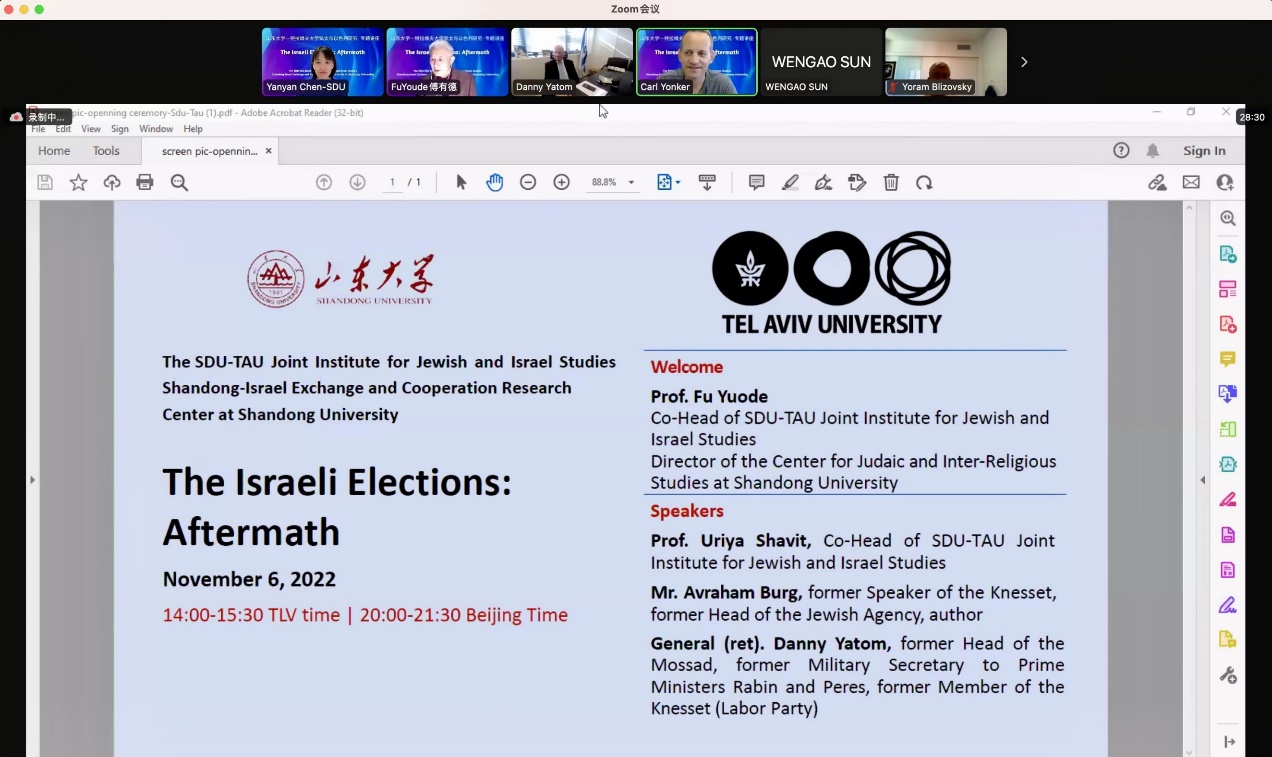 犹太教与跨宗教研究中心筹办的“犹太与以色列研究专题讲座”通过Zoom 成功举办。