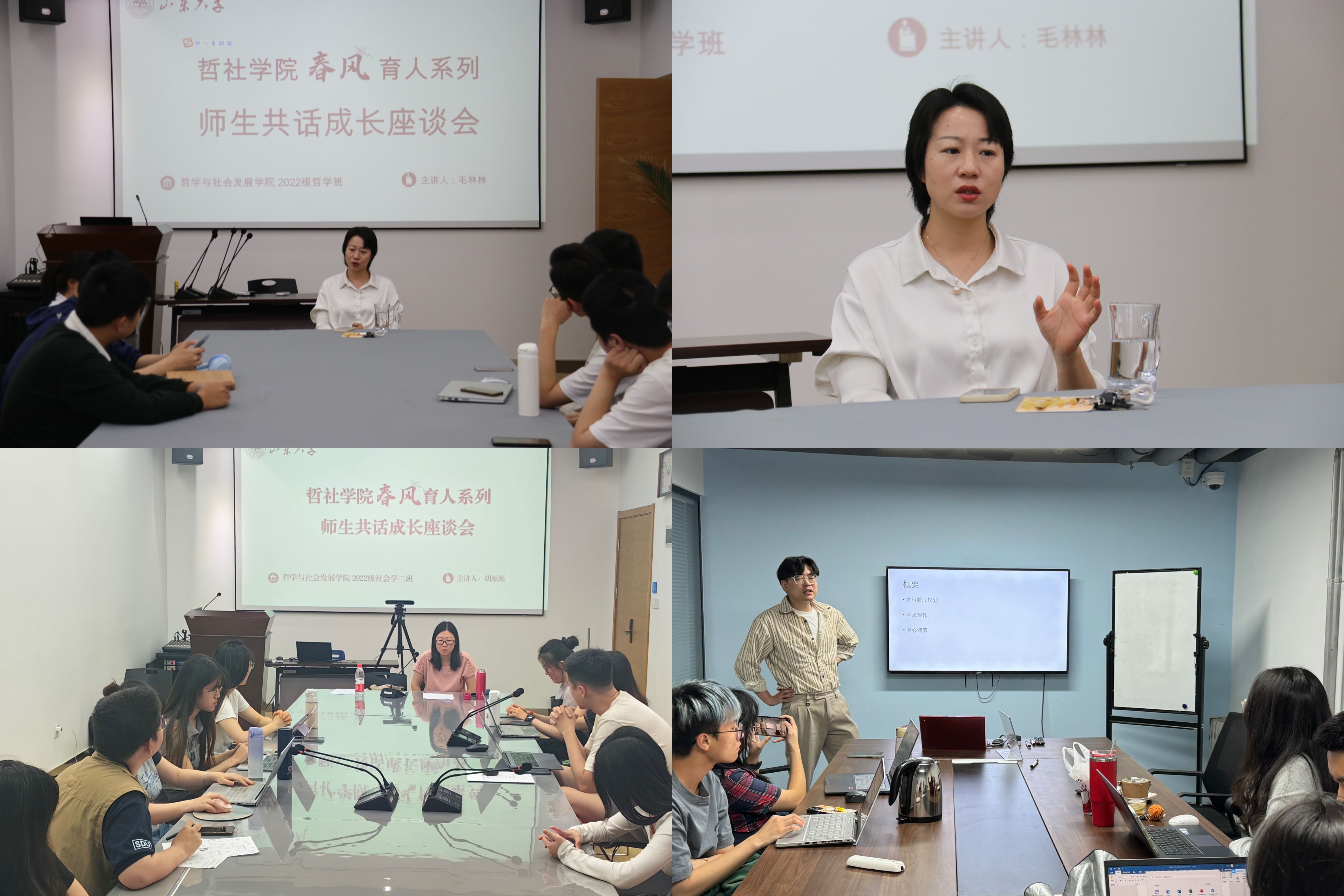 面向本科大二年级举办“春风”育人系列师生共话成长座谈会,邀请班主任分享求学过程、人生感悟等个人经历,现场解答学生困惑,旨在通过近距离座谈,倾听了解学生内心诉求,促进学生全面综合发展。截至6月份,“春风”育人系列师生共话成长座谈会已举办8期,涵盖本科二年级全体学生,班主任毛林林、梁栋、于志强、杨小平、胡源源、张仑、陈艳艳、张璇受邀进行分享,副书记翁祥栋、辅导员封莹全程参与。
