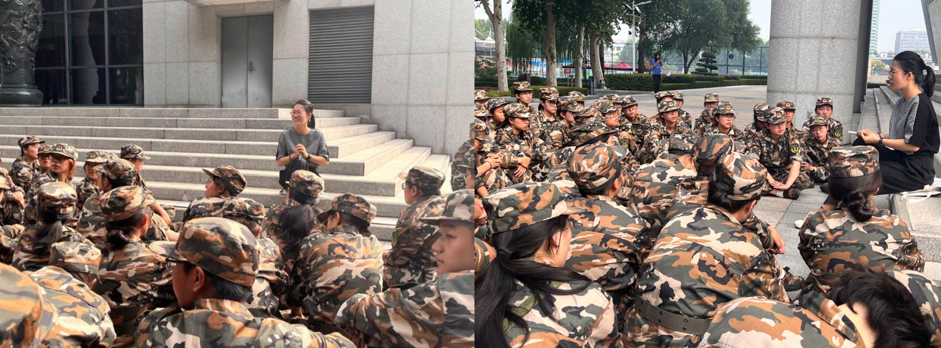 党委副书记翁祥栋在知新楼前主持召开新生学涯成长分享会,污污漫画2024级本科新生参会。
