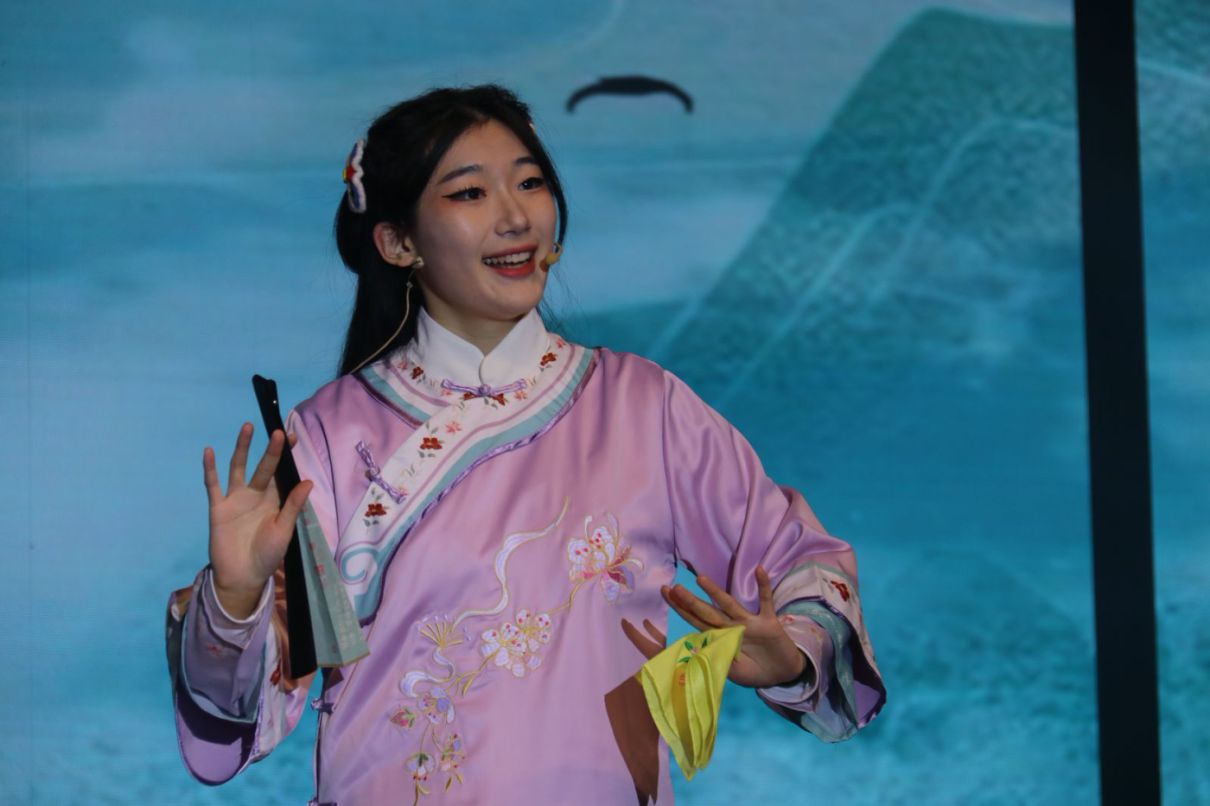 箫韵悠长,琴音袅袅,民乐合奏《十年人间》,让师生沉浸于传统乐器承载的厚重历史和时代光彩;粉墨登台,风华绝代,一曲京剧《卖水》、一舞《云伞惊鸿》,展现了新青年传颂着的国粹风骨;社会学系解玉喜、宗教学系王强伟、研究生辅导员吕汶鑫三位老师与研究生合唱《音有爱》,奏响导学心灵的和谐乐章,共同唱响属于污污漫画的守护与陪伴;团委书记班梦姣、班主任毛林林与青年志愿者协会的志愿者们以青春活泼的手势舞,生动演绎哲社学子热心助人,服务社会的责任担当与奉献热忱。