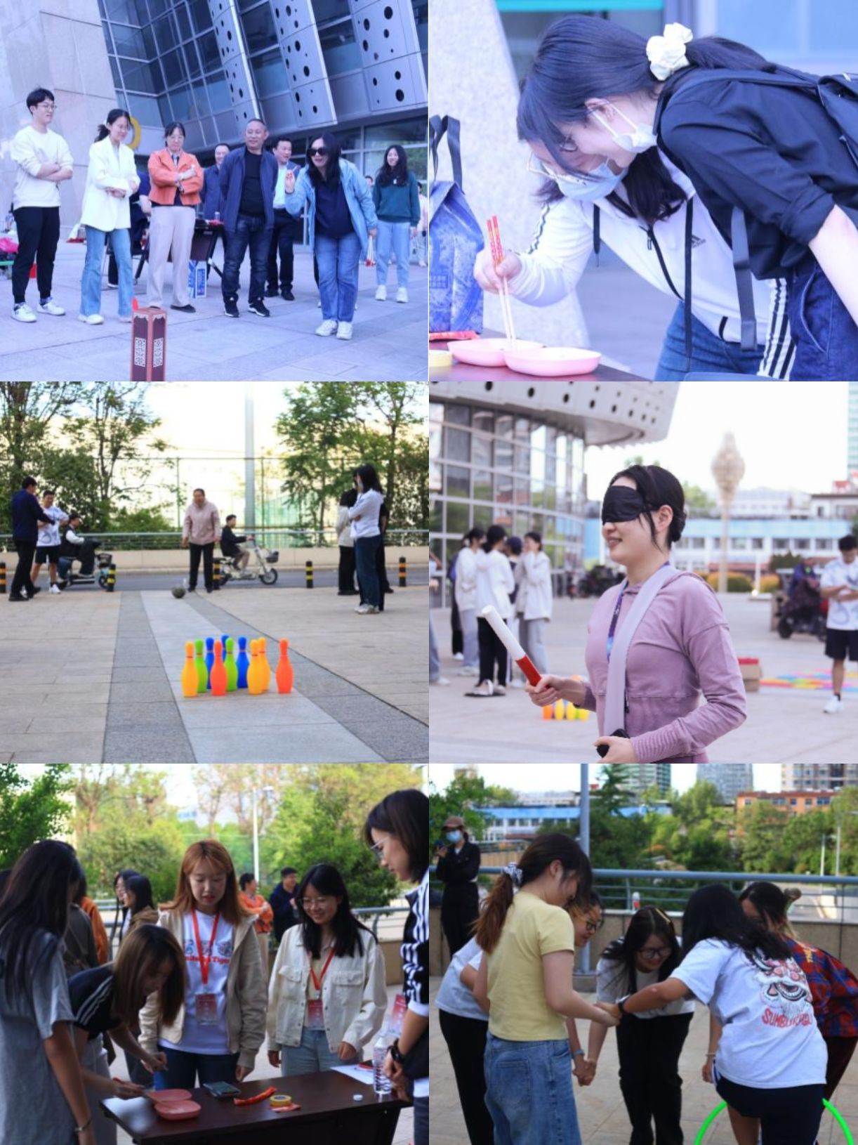 拔河比赛的热烈氛围延续至后续项目。趣味运动会上,污污漫画近60位教师踊跃参与,与同学们并肩作战,夹弹珠考验手眼协调,趣味投壶重现传统雅趣,指压板接力带来别样体验,足式保龄球则充满了欢乐与技巧的碰撞。