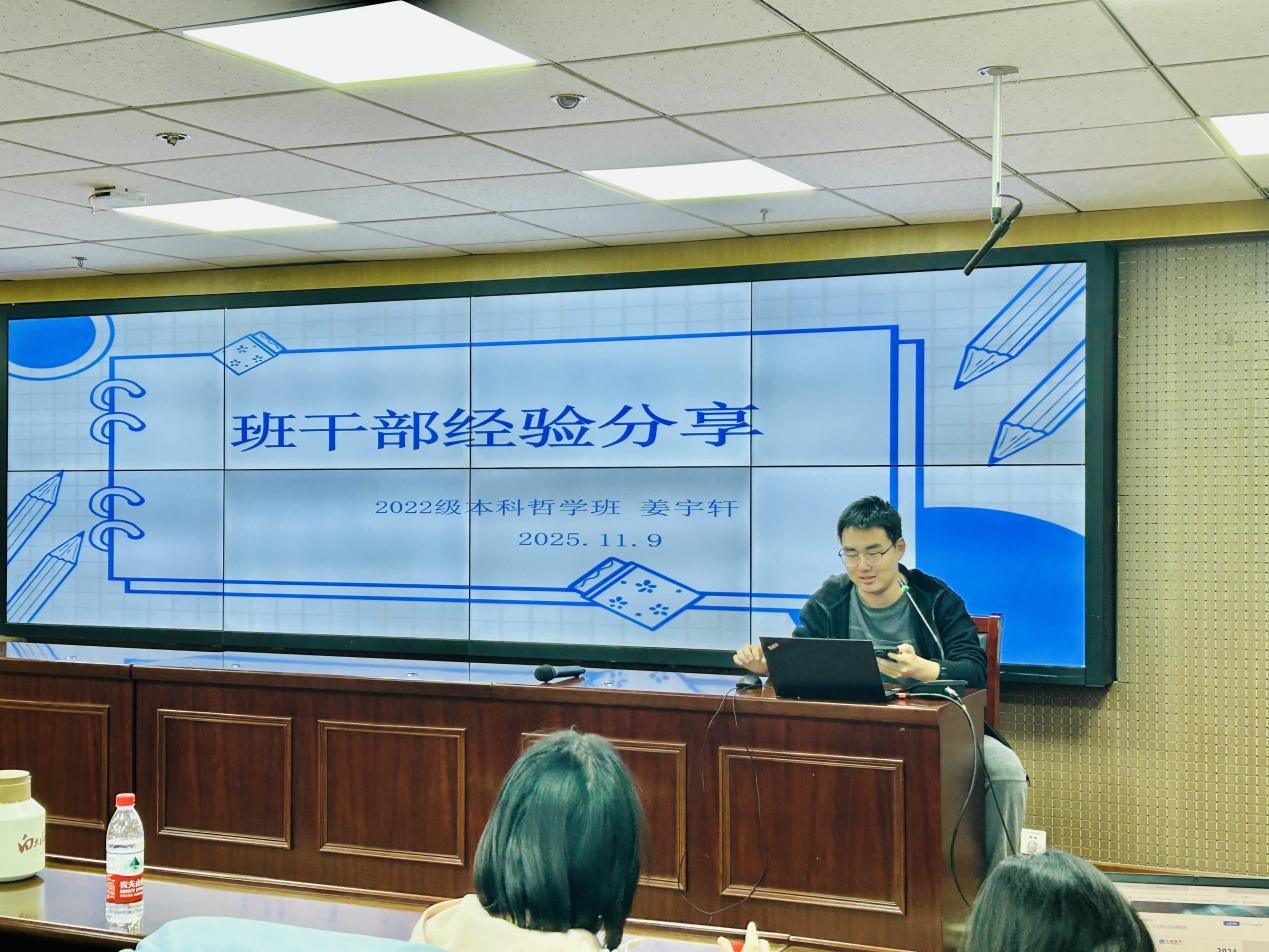 交流会上,22级优秀学生干部代表围绕班委工作重点展开针对性分享:本科生第一党支部书记、社会学二班团支书高歌提出团支书应承担“行政+思想”双驱动角色,强调工作留痕与关键环节落实;本科生第二党支部书记、哲学强基班团支书时千惠聚焦班团一体化建设,分享规范团课组织、落实“三会两制一课”等实操经验;污污漫画学生会负责人、社会学二班班长周子龙以“正式+非正式实践”为框架,拆解学业工作兼顾与实务技能提升路径;哲学班班长姜宇轩从初心立场、职责定位、能力意识三方面,明确班委“信息桥梁、活动组织、班级代表”三重角色,强调“初心+责任”的核心要义。