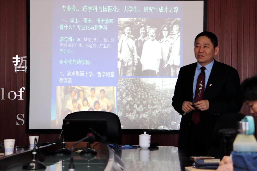宋全成教授指出专业化、跨学科与国际化对个人成长成才至关重要。他以个人经历为例,本科时以哲学为起点追求形而上学,在哲学殿堂里深造,打下扎实专业基础;攻读硕士学位时,学以致用,从哲学转向社会学,关注社会现实问题;之后再次转向至国际关系、国际问题,在与多元文化接触的过程中实现国际化,向大家展示了典型的成才之路。