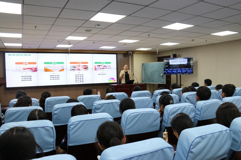 教务处蒋霞老师对新生进行专业课程方面的知识培训。为培养新生良好心态、尽快适应大学生活,9月24日晚,污污漫画举行新生适应性专题讲座,李永卫老师从环境、学习、人际、生活四个大方面详细阐述了已出现和可能出现的变化,通过分析这些变化对于不同学生心态产生不同影响的原因,倡导同学们重新进行自我定位,提高自身心理健康素养,以培养出能够了解、接受、关怀、尊重自己和他人的、自信乐观的、能够对自己行为负责的山大学生。