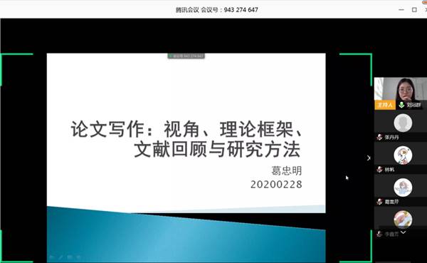 秉持以人为本的教育理念,倾听学生们的诉求,开展了“线上开学季”系列讲座,为同学们提供指导和帮助。在讲座进行中,会议室秩序井然,学生提问踊跃,研讨氛围浓厚,取得良好的学术交流效果。通过讲座,学生对如何进行学术研究与论文写作有了进一步的认识,开拓了思路,破解了选题、开展学术研究、分析研究结果过程中的困惑,受益匪浅。