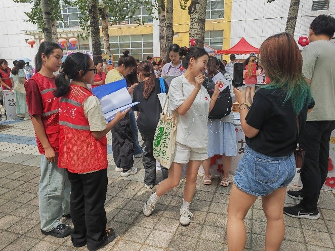 9月7日至9月8日,由志愿者们精心策划组织的公益市集于齐园餐厅南门举办如火如荼地展开。20幅由罕见病患者画作制成的展板,以其独特的魅力吸引了众多师生的目光。在市集中,由套圈、爱心刮刮乐、蒙眼踏步等系列创新互动游戏成为了公益打卡的热门站点,受到过路师生的火爆欢迎。通过参与互动学习、挑战答题、捐赠闲置物品以及加入公益社群等活动,同学们不仅增进了对罕见病群体的认识,更深刻了解到了他们的多元困境。现场同学纷纷表示将来会更加关注这些需要帮助的群体,并在公益的道路上以实际行动贡献自身力量。