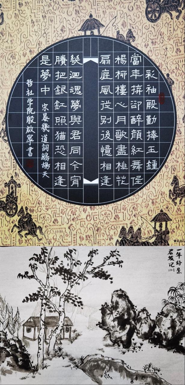 第二阶段,“妙笔生花”比赛环节进行,选手们以笔墨色彩诠释“美”。传统文化之美、西方现代之美、次元交互之美……各美之美尽现眼前。张沁涵、赵宇珣等同学手持羊毫笔,将古诗词熟练地书于宣纸之上,表达出“诗酒趁年华,枝横而不流”对人生态度;冯裕婷、雷沐春和殷启宁等同学的硬笔书法作品各具特色,楷隶行皆具,有简言道尽“平常心”的《心经》,舒心解意,有气势磅礴的毛泽东诗词,力透纸背;亦有刘彤同学用细线勾勒的动漫少女,朝气蓬勃,栩栩如生;孟德誉的墨竹图笔笔入木,将君子的高洁、正直气质贯彻其中;宋凌宇则同用一支笔创作出一幅钢笔画和一幅硬笔书法作品,笔底生花。