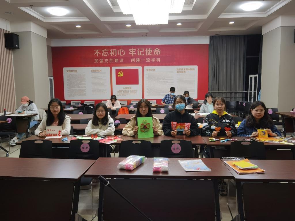 “心灵手巧”比赛环节中,各位参赛选手埋头进行了限时一小时的创作,彩纸经过选手们的剪裁与点缀,精美的作品跃然立于眼前。高睿晗的折叠多彩爱心小巧且精美;刘彤用多层彩纸展现出花仙跃荷丛的唯美画面;亓鑫的小红花由黏土和卡纸制作而成,“送你一朵小红花”的歌词书于纸上,表达了其积极向上的生活态度;周海鸥匠心独具,完成了一幅立体镂空的向日葵风景剪纸作品;王晓蓉采用中国传统剪纸方法以红纸为底,作出立体字“春”、党旗和其他正能量元素献礼建党百年;王均清则引用“学无止境,气有浩然”的山大校训,用贺卡的形式庆祝山大建校百廿。