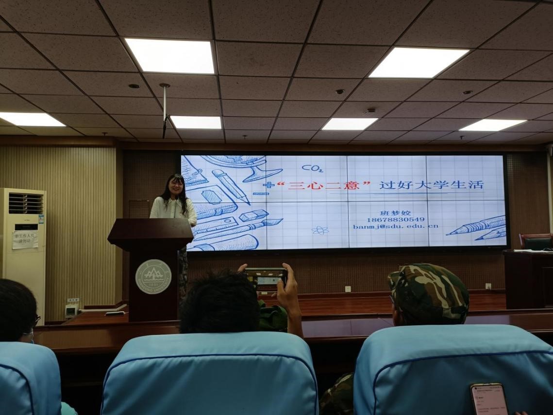 随后,班梦姣结合同学们在军训期间的表现,详细介绍了大学生应该具备的“三心”:包容心、上进心、坚强的心。班梦姣强调,同学们要对自己和同学有包容心,接纳自我和他人的不完美;在学业上要有上进心,寻找适合自己的学习节奏,夯实专业基础;在生活中要有坚强的心,勇敢地面对挫折与考验。
