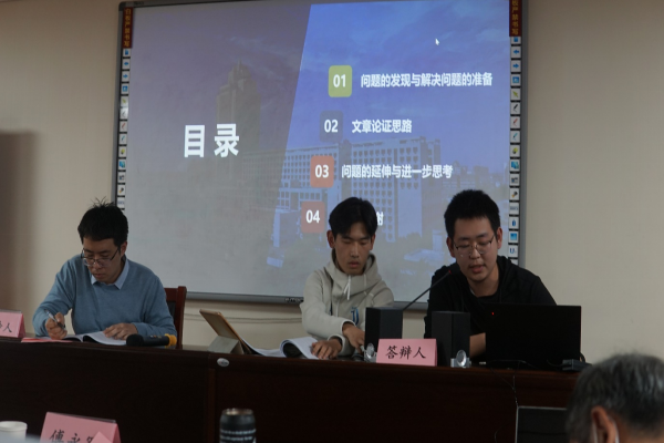 中场休息过后,由付乙然和王学庆同学对于笛卡尔身心关系问题和对康德道德律空洞性问题的一种可能辩护论题进行答辩,最后由郝常棋同学和谭骏鑫同学对原始佛学四类十四无记问题和语言哲学twin earth的论题答辩。每场答辩过后在场教授对同学们论文中存在的问题进行指正并提出可以改进的具体方向,对发现的论文创新点亮点进行表扬。