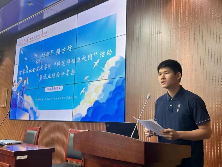 “师兄师姐返校园”活动暨就业经验分享会在知新楼A115报告厅召开。2023届毕业生陈思翰、于航,2024届毕业生周海鸥受邀参加活动,为在校同学分享就业、职场经验。
