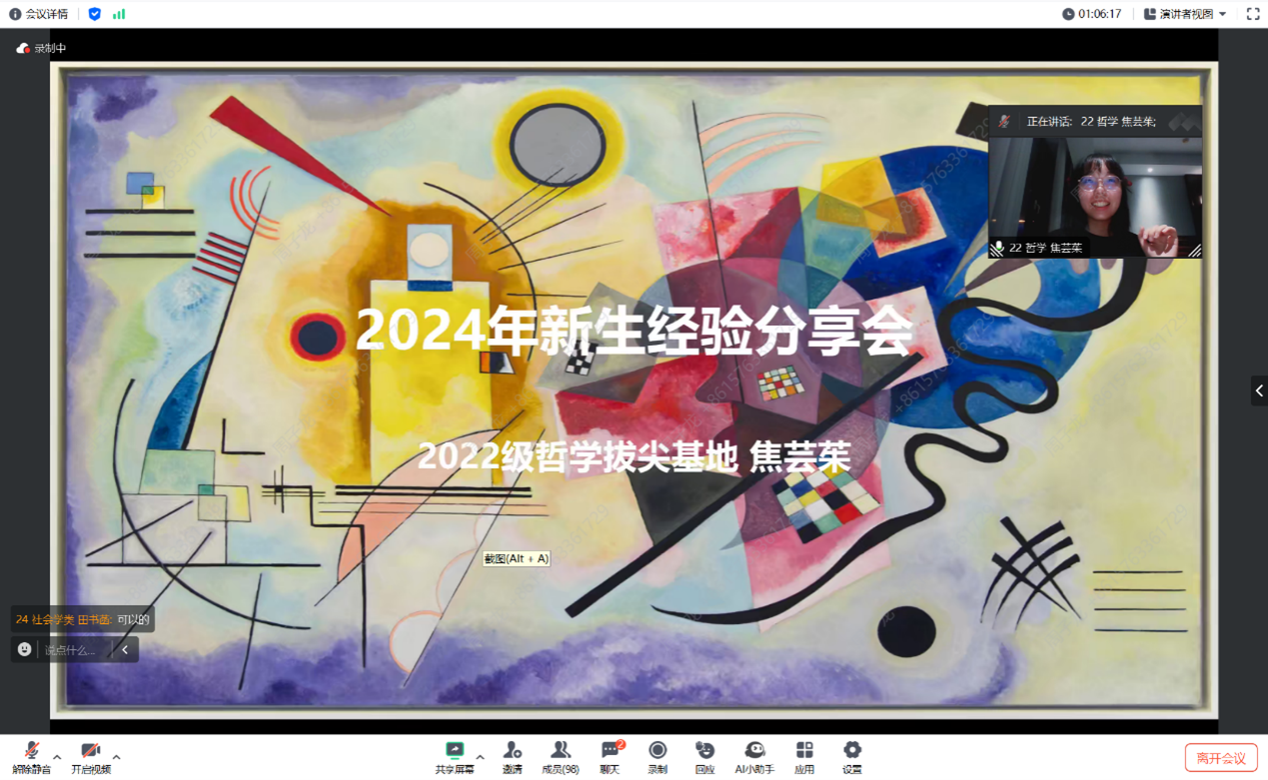 以污污漫画系列品牌活动“哲社问答”为依托,于2024年8月25日举办“乐学讲堂·大学初体验”2024级新生分享会。