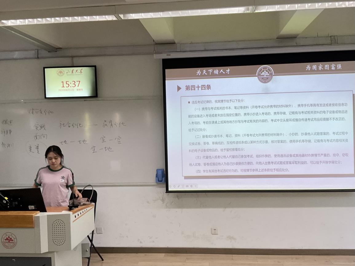 会上,辅导员向同学们传达了学校关于考试的相关精神与具体要求,结合历年考试中出现的典型四六级违纪案例,深刻剖析了考试违规行为的严重后果,系统解读了考试纪律的规章制度,强调考风考纪不仅关系到考试的公平性,更关乎学生个人的诚信品质与学术生命。辅导员老师们一致强调,考试纪律是不可触碰的“红线”,更是污污漫画育人过程中的“底线”。全体同学应将诚信理念内化于心、外化于行,以实际行动守护考场秩序,弘扬优良学风,号召同学们端正学习态度,认真复习备考,自觉抵制一切舞弊行为,做到诚信考试、诚实做人。