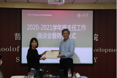 郑倩为2020年新聘班主任颁发了聘书,并对新聘任的班主任提出了工作期许与要求。他结合自身经历和过去工作的经典案例,提出班主任要在教育教学两条线上做好学生成长成才引领工作,既为良师,也做益友。他指出,班主任要葆有工作责任心,要在价值观塑造、学风建设、学生成长发展等方面做出努力,做到教学相长。