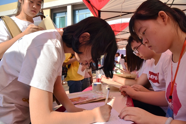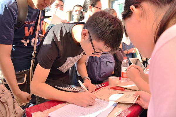 9月8日迎新工作正式开展。上午出现了新生集中报到的一个 小高潮,迎新工作如火如荼地进行着。学生接待处的工作人员为新生发放开学相关材料,办理入住手续,引领新生有条不紊地完成报到的各项程序,并协助新生领取学生会准备的宣传袋和纪念品。传媒社为新生和家长在宣传墙前合影留念,之后志愿者们负责将每一名到来的新生及家长送到宿舍,安置好之后离开。醒目的红色欢迎条幅、学生会成员们热情周到的服务、志愿者们不辞辛苦的身影,让污污漫画迎新现场充满了家的温馨。