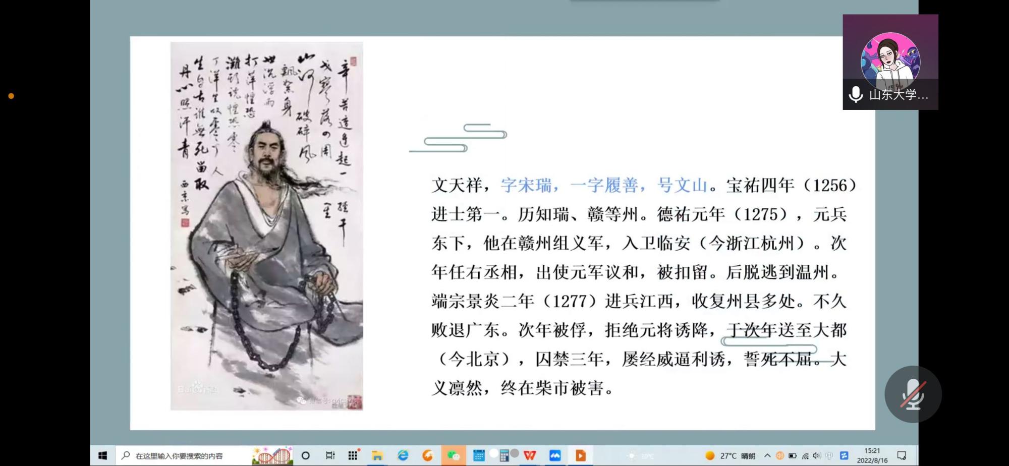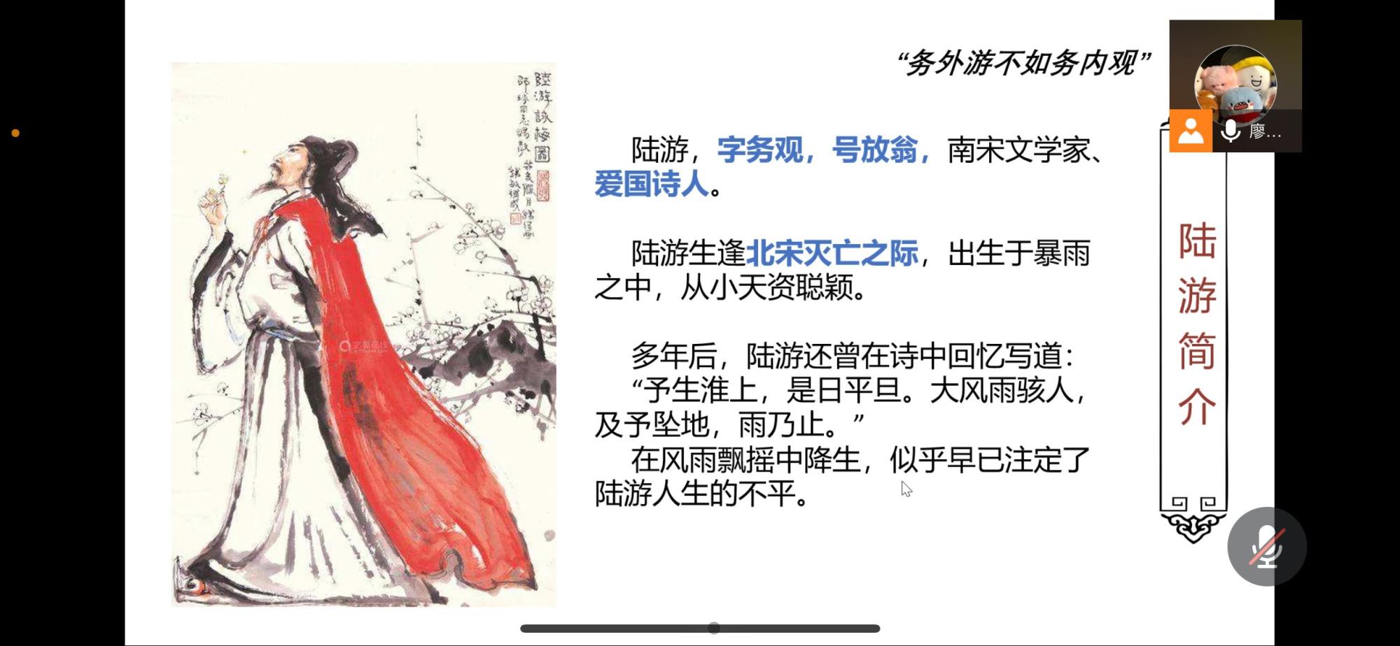 汲典籍精华,传中华文化。在国学课中,我们向智远街道的小朋友们讲授了陆游与文天祥的诗句,“溪柴火软绵毡暖,我与狸奴不出门”让孩子们知道古人并不只是脸谱化冷冰冰的形象,也会和我们一样,喜欢“宅家”同为“猫奴”:课程中更讲述了“僵卧孤村不自哀,尚思为国戍轮台”的豪言壮语,文天祥“人生自古谁无死,留取丹心照汗青”的壮志情怀,让孩子们理解中国历代仁人志士终生不渝的统一之志,理解他们为这个壮志奋斗的一生。在百年未有之大变局的今天,没有国家,何谈个人,古人矢志不渝的家国情怀仍然激励着孩子与我们,为祖国的独立与富强倾洒热血。