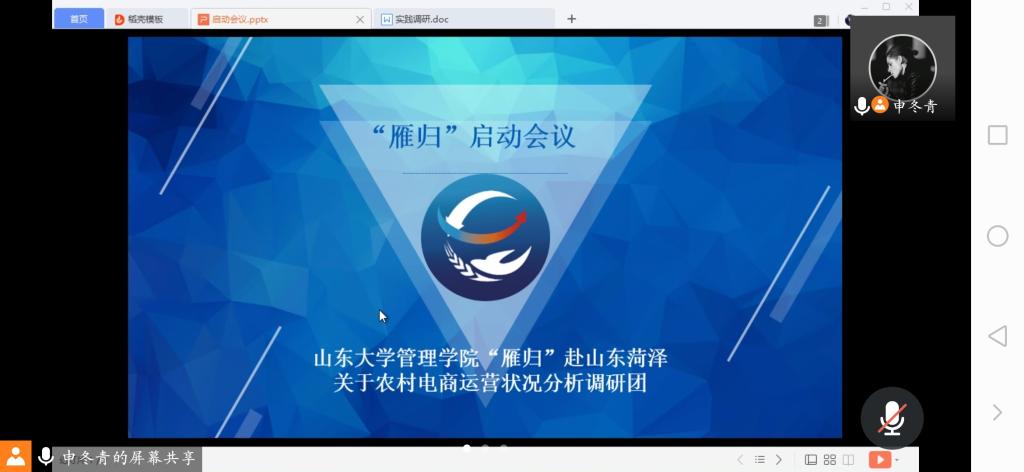 本次视频会议的顺利进行,为下一步实地调研工作的安排做出了详细的规划,打下了坚实的基础,在给“归雁”实践团队全体成员带去了信心和力量的同时,也有助于调研工作的顺利进行。