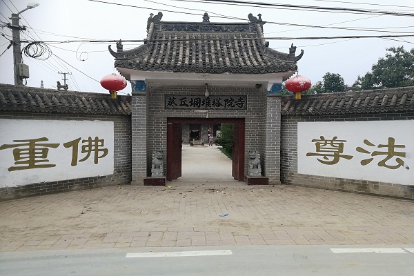 基于塔院寺在葵堌堆村历史文化中的重要地位,队员们怀着十分激动的心情来到这里进行文化调研。进门前,队员们被门两侧白墙上的金字所吸引,两侧墙山上分两边书有“重佛”、“尊法”两个词语,这体现了塔院寺作为新时代修缮的文物古迹所具有的传统与现代相交融,信仰与法制相结合的鲜明特色。