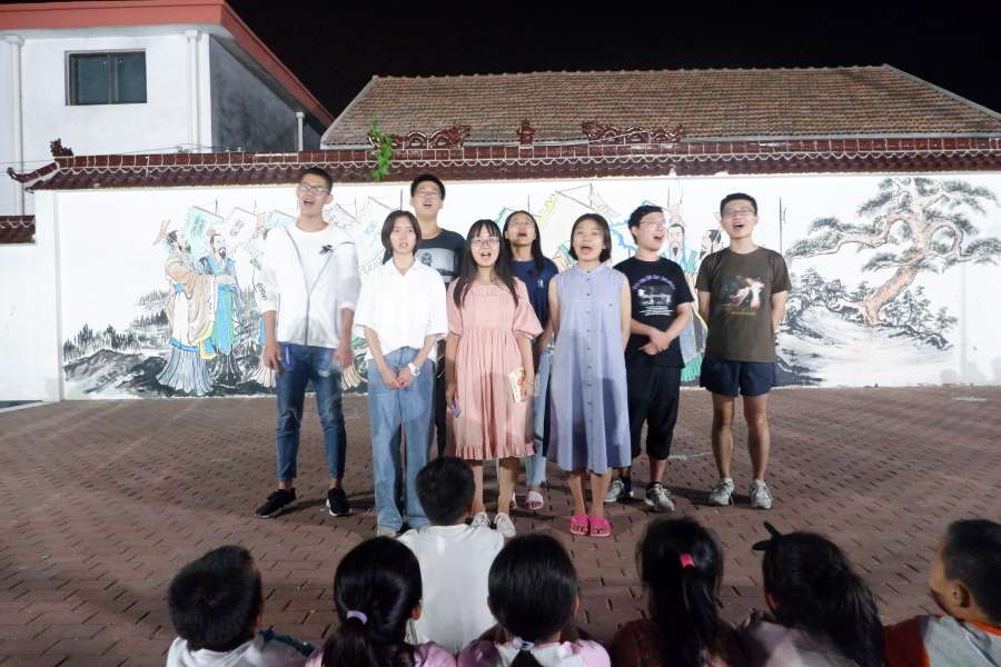 晚上,团队成员与葵堌堆村村民齐聚会盟广场,举办了一场精彩的文艺汇演。在两位队员的主持下,进行了广场舞《卡路里》、合唱歌曲、街舞等节目的表演。其中,广场舞《卡路里》为几天前团队成员向村民教授,在本次文艺汇演中,村民们再度表演这支舞蹈,展现自己的学习成果和对于舞蹈的喜爱;唱跳歌曲节目受到了村民们的热烈掌声,可见大家对于表演的肯定;在汇演尾声时,团队成员齐唱校歌《我的山大我的家》,展现本校学生的爱校之情和精神风貌。