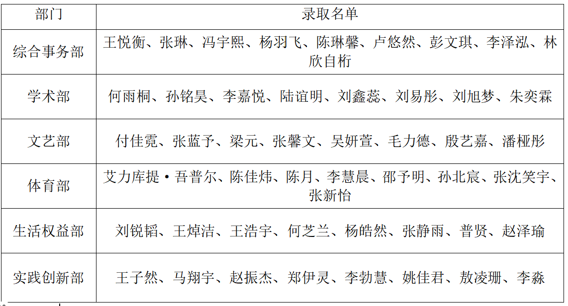 第二十四届学生会、第二届青年志愿者协会暨第四届媒体与创意中心纳新录取结果公示