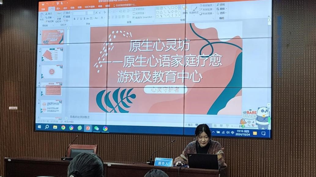 原生心灵坊项目组负责人李勃慧从“创业背景”“产品技术”“市场分析”“团队战略”“社会价值”“发展愿景”六个方面为同学们带来项目的论证分享。其中,在产品开发环节,她强调拥有一个好想法的重要性,鼓励同学们主动用一个好想法推动一支好队伍的建设,提出要重视团队分工合作,加强多学科相互交叉借鉴,充分发挥跨学科融合优势,不断推进项目成果的完善与发展。