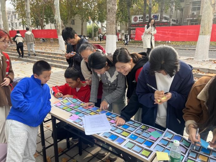 中心校区齐园餐厅南侧设置了展台,鼓励同学们以书写明信片的形式,为留守儿童送上真挚的祝福。这一创新性的互动平台架起了大学生与留守儿童之间的情感纽带,进一步激发了在校大学生的社会责任感和使命感,促使他们为留守儿童的身心健康发展贡献出自己的力量。