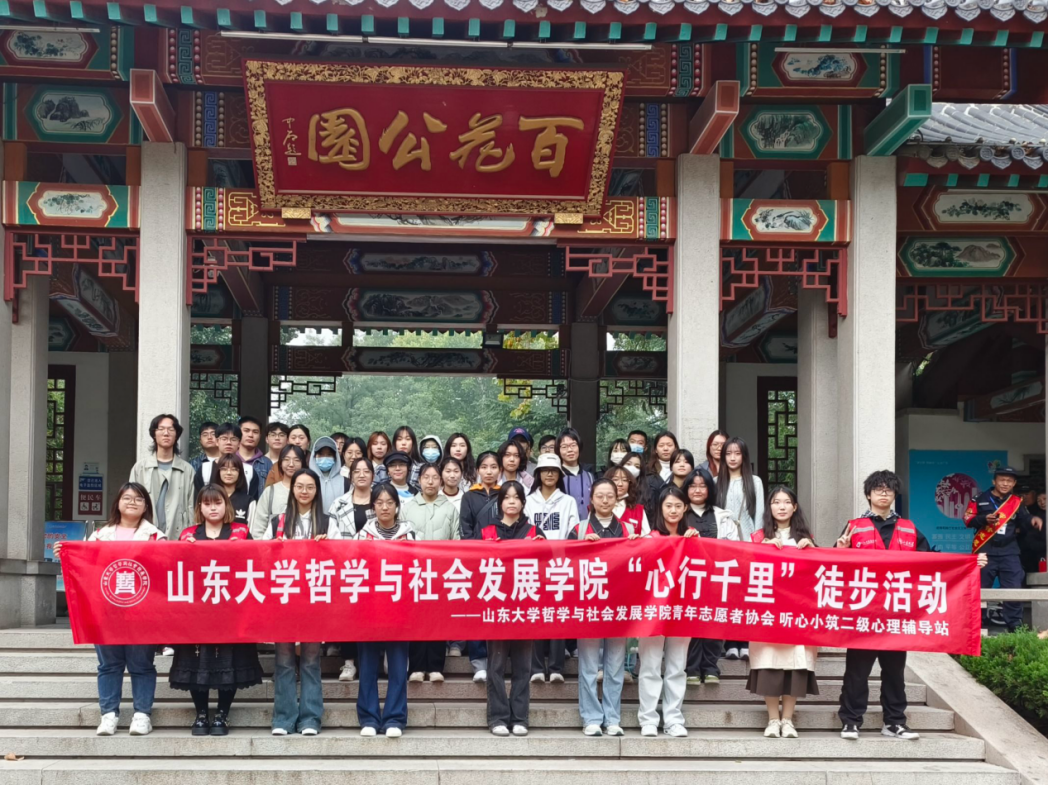 (四)“心行千里,徒步送秋”活动:为增强大学生心理韧性,使其在与自然的接触中疏解心理压力,协会在济南市历城区百花公园举行秋日徒步活动。同学们在志愿者的陪伴下,在公园里观赏秋景、放松身心,并拍摄下秋景中的美好瞬间。通过徒步的方式,同学们不仅锻炼了身体,还在与自然的接触中放松心情、释放压力,同时增进了彼此之间的交流与情感。