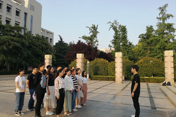 全体成员在国旗下宣誓,重温入团誓词,支部委员张爽领誓。